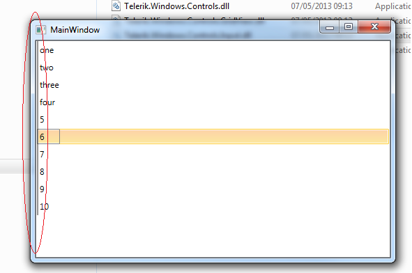 ShowColumnHeaders="False" ShowGroupPanel="False" RowIndicatorVisibility="Collapsed". I can see vertical grid line (or it may be something else)