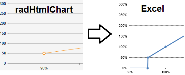 I'm struggling to find a way to allow my first marker to have a vertical line straight up from zero as seen in the excel graph.