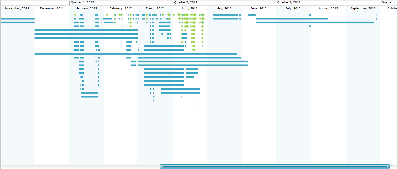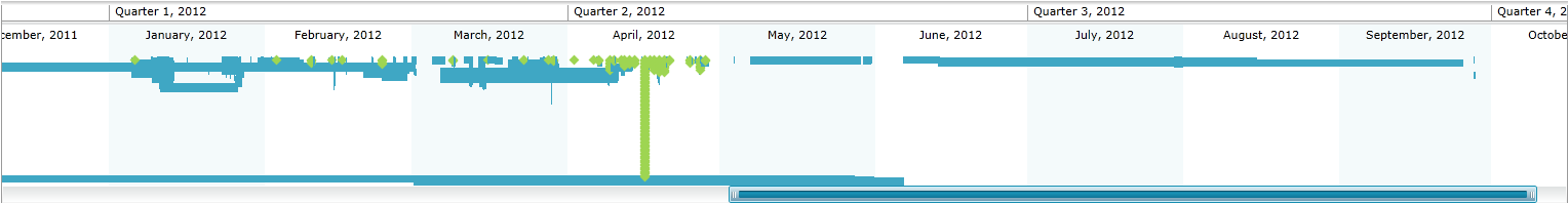 <ScrollViewer VerticalScrollBarVisibility="Visible"> <telerik:RadTimeline x:Name="RadTimeline1" Height="800" PeriodStart="2011/01/01" PeriodEnd="2020/01/01" VisiblePeriodStart="2011/03/03" VisiblePeriodEnd="2011/04/04" StartPath="EventStartDate" DurationPath="EventInterval" ItemsSource="{Binding AllItems}"> <telerik:RadTimeline.Intervals> <telerik:DayInterval /> <telerik:WeekInterval /> <telerik:MonthInterval /> <telerik:YearInterval /> </telerik:RadTimeline.Intervals> </telerik:RadTimeline></ScrollViewer>That is why, I suppose there is something specific to your scenario that leads to the described result. Could you please open a new support ticket and send us a running test project, demonstrating this problem?