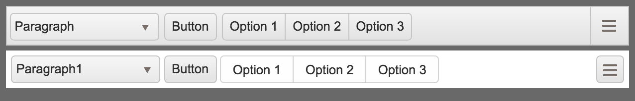 <!DOCTYPE html><html ng-app="myApp"><head lang="en"> <meta charset="UTF-8"> <title>ButtonGroup Test</title> <style> body { background-color: dimgrey; } </style></head><body ng-controller="AppCtrl" style="font-size: 80%; font-family: 'Arial' "><div kendo-toolbar k-options="toolbarOptions"></div><div style="height: 5px;"></div><div style="background-color: white; padding: 5px;"> <select kendo-drop-down-list style='width: 150px;'> <option>Paragraph1</option> <option>Paragraph2</option> </select> <kendo-button>Button</kendo-button> <kendo-mobile-button-group style="display: inline-block;"> <li>Option 1</li> <li>Option 2</li> <li>Option 3</li> </kendo-mobile-button-group> <kendo-button style="float: right;" sprite-css-class="'k-icon k-i-hbars'" ></kendo-button></div><script type="text/javascript" src="../vendors/jquery/dist/jquery.min.js"></script><script type="text/javascript" src="../vendors/angular/angular.min.js"></script><link rel="stylesheet" href="../vendors/kendo/styles/kendo.common.css" /><link rel="stylesheet" href="../vendors/kendo/styles/kendo.default.mobile.css" /><link rel="stylesheet" href="../vendors/kendo/styles/kendo.default.css" /><script src="../vendors/kendo/js/kendo.all.min.js"></script><script type="text/javascript" src="app.js"></script></body></html>