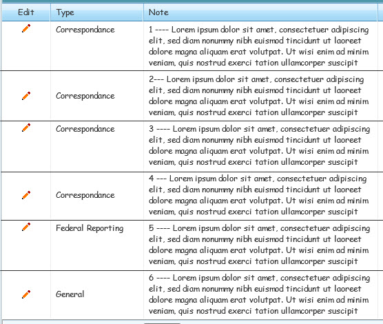 <telerik:RadGrid ID="NotesGrid" runat="server" DataSourceID="sqlGetNotes"> <MasterTableView ItemStyle-VerticalAlign="Top "> <Columns> <telerik:GridEditCommandColumn ButtonType="ImageButton" UniqueName="EditCommandColumn" HeaderText="Edit" HeaderTooltip="Edit Note" HeaderStyle-width="80px" HeaderStyle-HorizontalAlign="Center" ItemStyle-HorizontalAlign="Center" ItemStyle-CssClass="MyImageButton" /> <telerik:GridDropDownColumn UniqueName="Note_Type" DataField="Note_Type" HeaderText="Type" DataSourceID="sqlNoteTypesLookupList" ListValueField="Note_Type" ListTextField="Note_Type" DropDownControlType="RadComboBox" /> </Columns> </MasterTableView> </telerik:RadGrid>Thanks