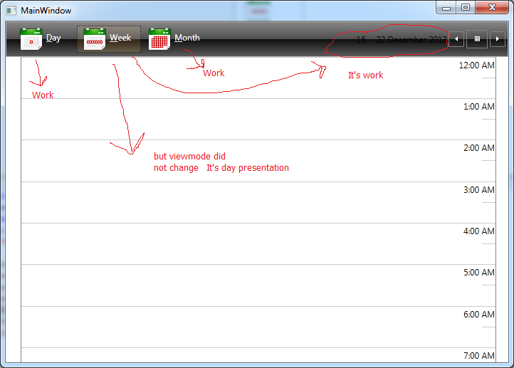 Day, Month and TimeLine buttons works well! But when i click WeekMode - appears DayMode presentation.
