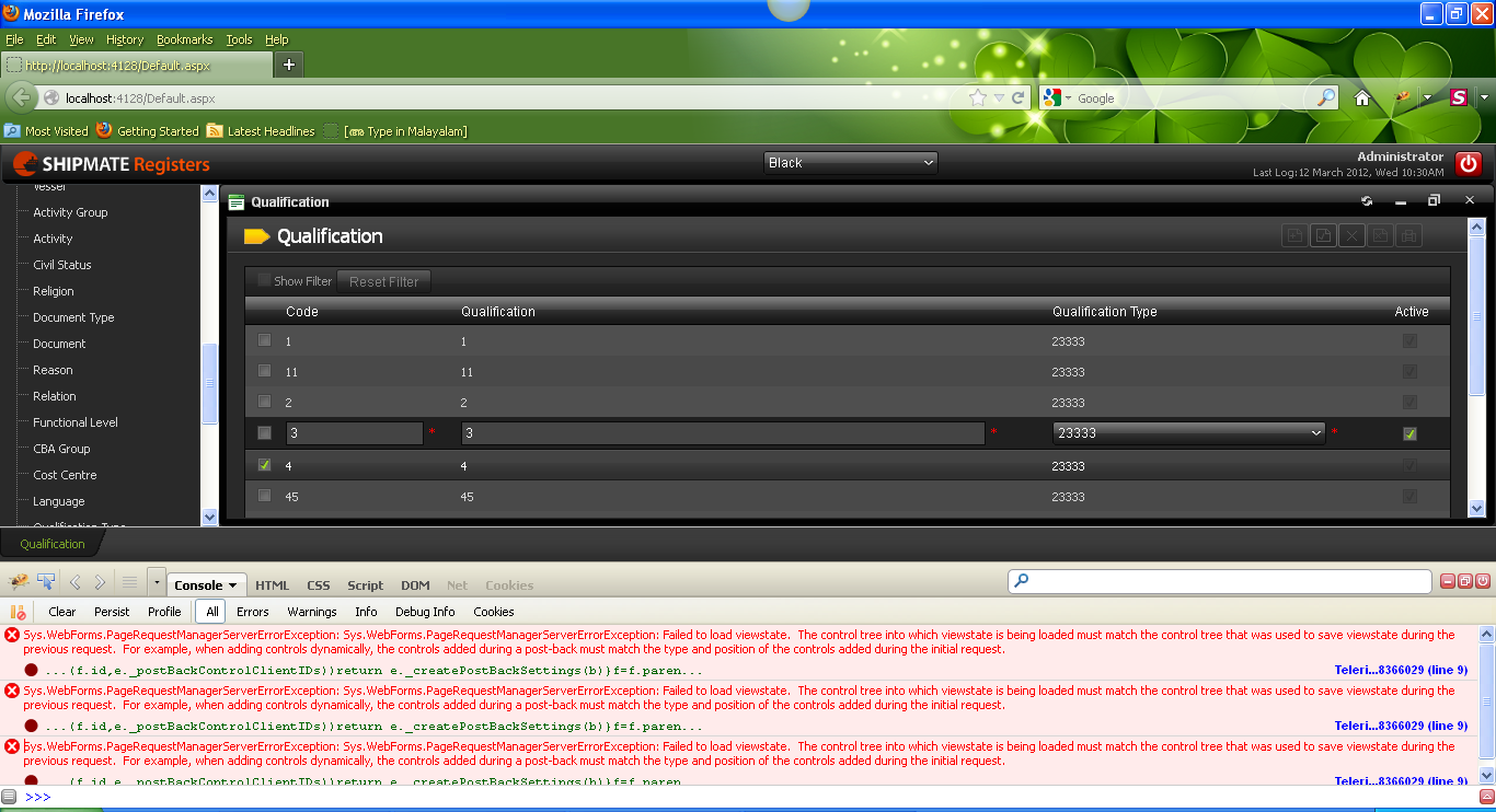 While performing the 5th action we are face ViewState error.