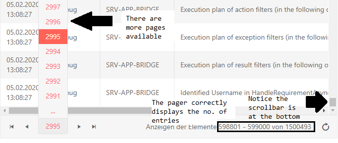 Now the problem is that only about half of the available data is shown in the grid when scrolled to the end. See picture "missing_data.png" for clarification.