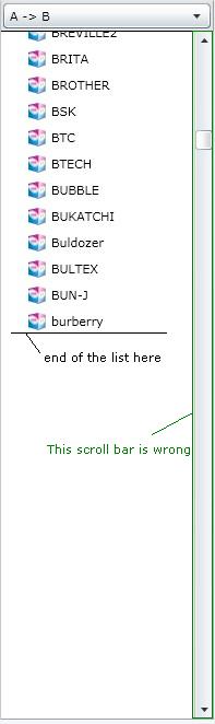 I am playing with the Visibility property of my binded objects to show or hide some nodes. The problem is that the right schroll bar of the treeview doesn't update with the visible items count. It takes the total items count. It means that I can have a scroll bar that lets the user think that there are a lot of items in my view, but in fact, only a few are visible (see attached screenshot)...