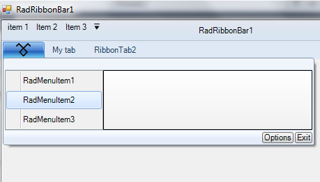 It doesn't look good ... the brown menu... And what about the text appearing corrupt for the Ribbon's Quick Access buttons? Why doesn't my runtime-form look like the design-time form? It looks like the application's title bar is being rendered by Windows 7 and not by the Telerik's theme.