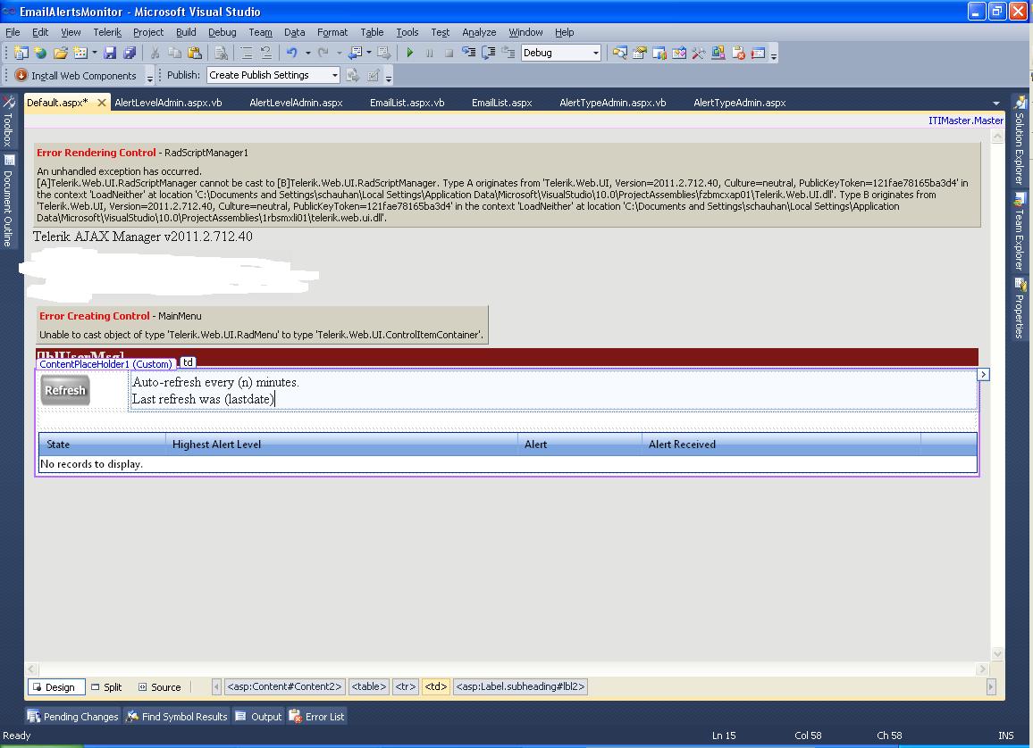 All of a sudden I am seeing this error in my visual studio designer .Please see attched image for error.