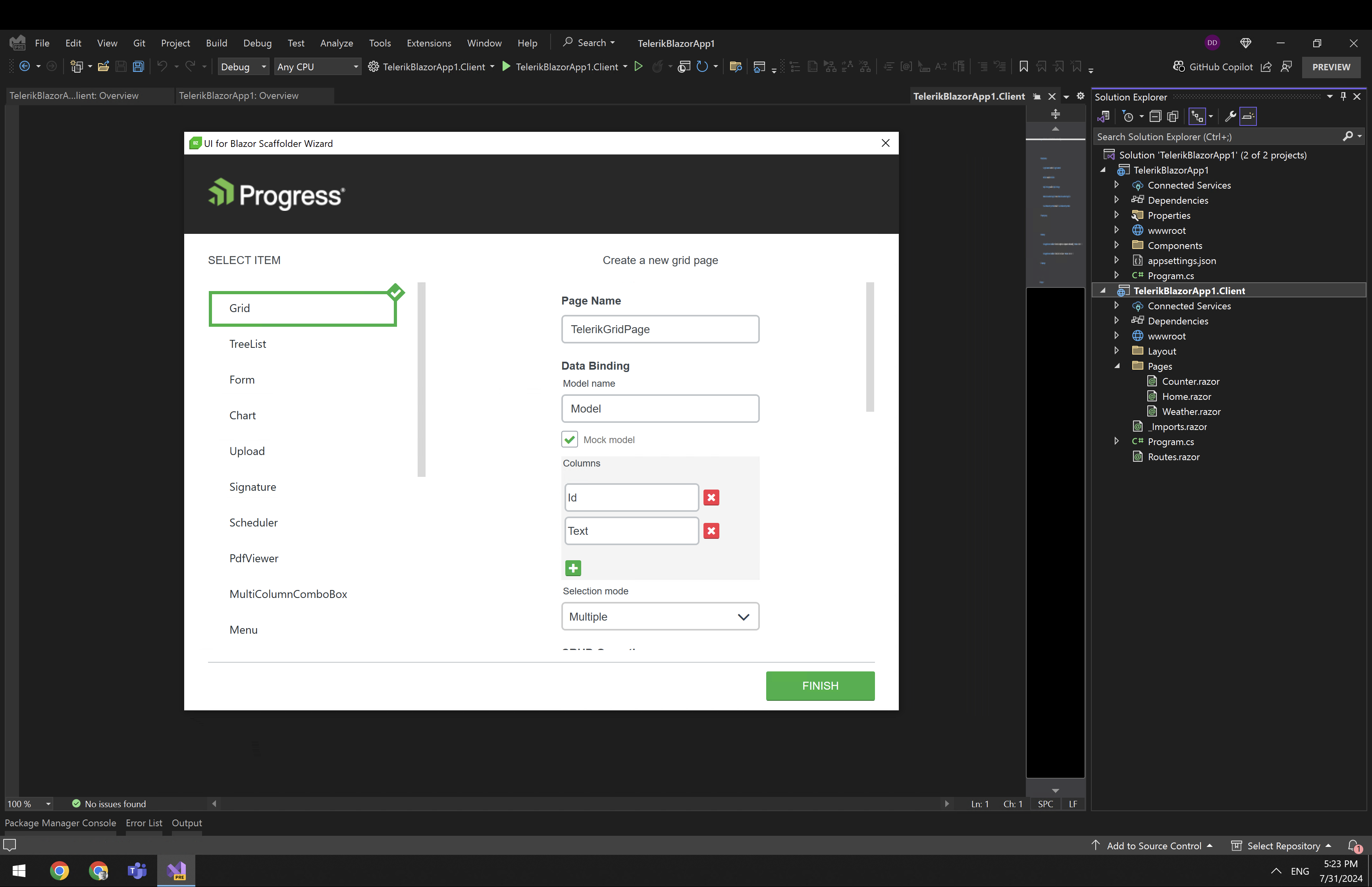 - Razor Page with Telerik Grid