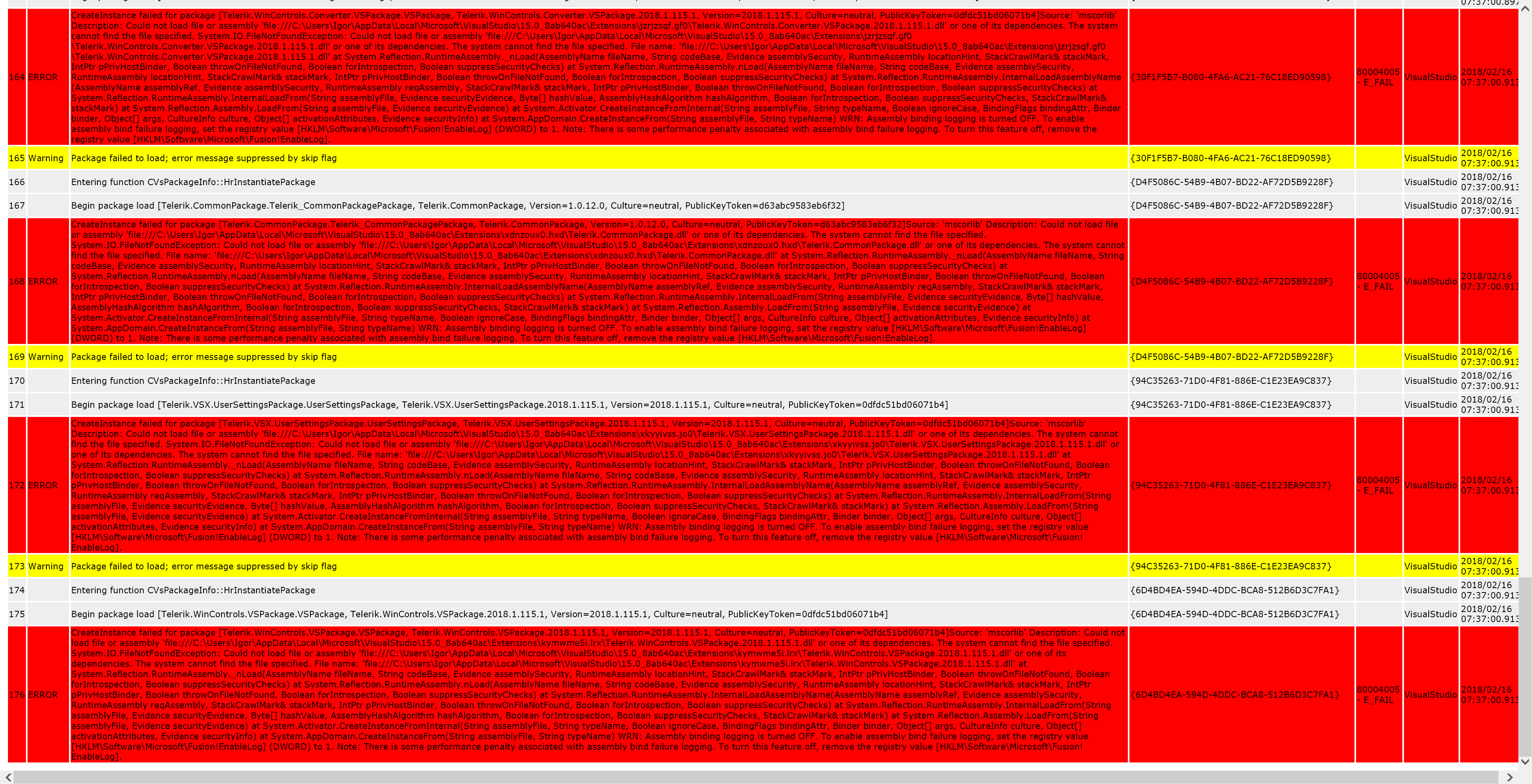 Attached is the corresponding part of the VS startup log (the ActivityLog.xml file from the VS folder).