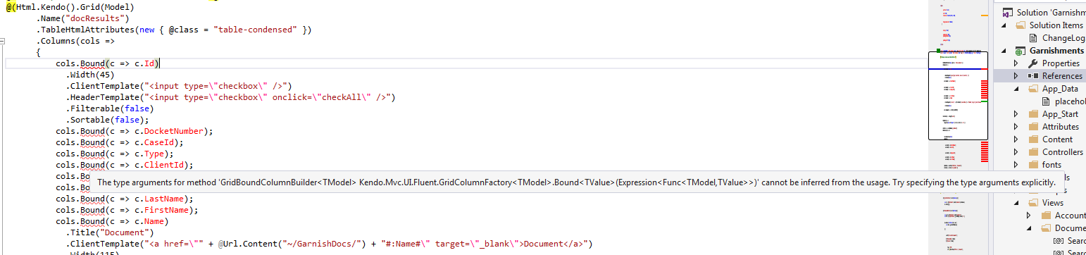 I have a grid that is suddenly showing errors in VS2015, but the code compiles and runs exactly as expected. I've included a screenshot... The error isn't all that helpful really, saying the data type cannot be inferred... Could someone tell me what I can do to resolve these errors? Again, they're not really errors since the grid runs as expected when the app is deployed.