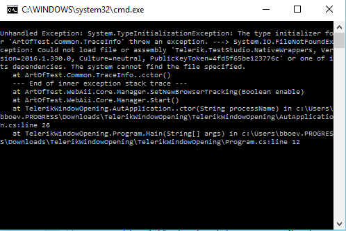 How should I run the test? When I run TelerikWindowOpening it crashes (see the attached screen shot).
