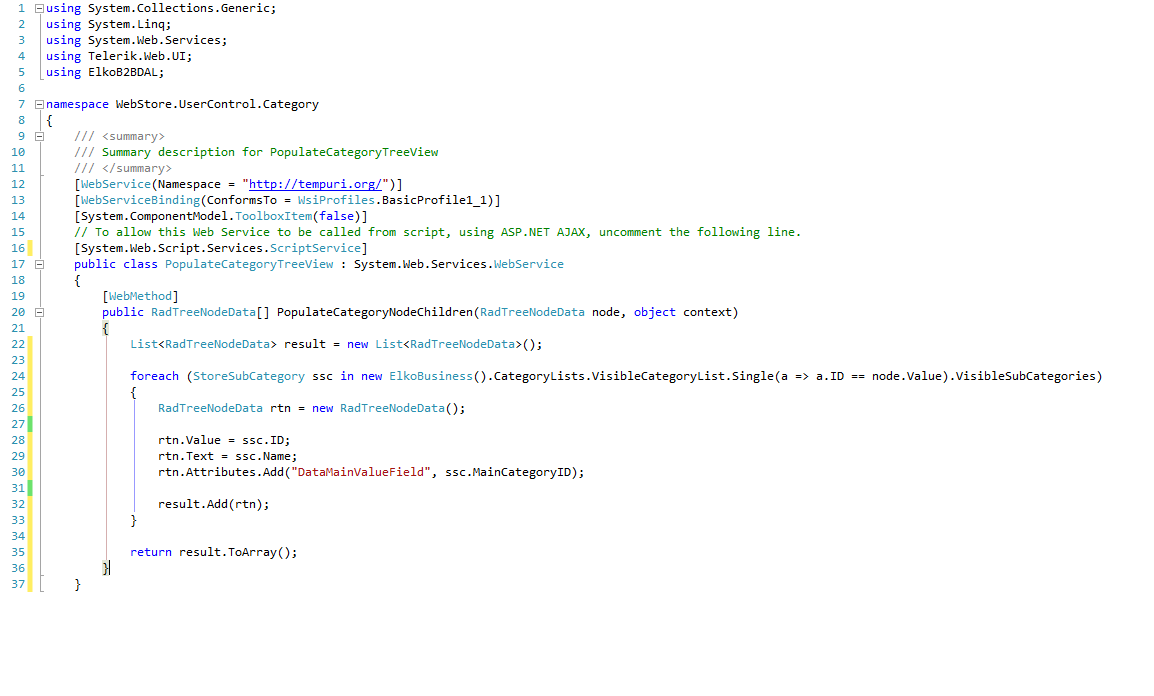 Taught I should add the web service too....the treeview has only two levels, and only the second level is populated through web service
