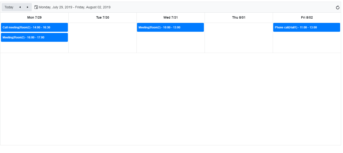 .k-scheduler-content{ display:none;}The above will hide the mentioned "small events" no matter the data reset has passed or not. I am also attaching a screenshot of how I currently see the Scheduler. If it happens that you open the project after the data reset, please add a few events of your choice by clicking on the blank space under each date in the Scheduler.