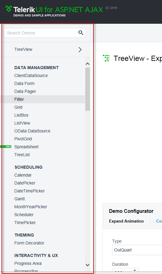 I like the way the left hand nav operates on the Telerik Demo pages (E.g. http://demos.telerik.com/aspnet-ajax/label/overview/defaultcs.aspx). It looks like its built with a SearchBox at the top, a ToggleButton to switch between the currently selected Control and the 'All Controls' menu. Is there a source code example of this anywhere? I like the way the menu slides left and right based on the Toggle Button and wanted to know how this was achieved.