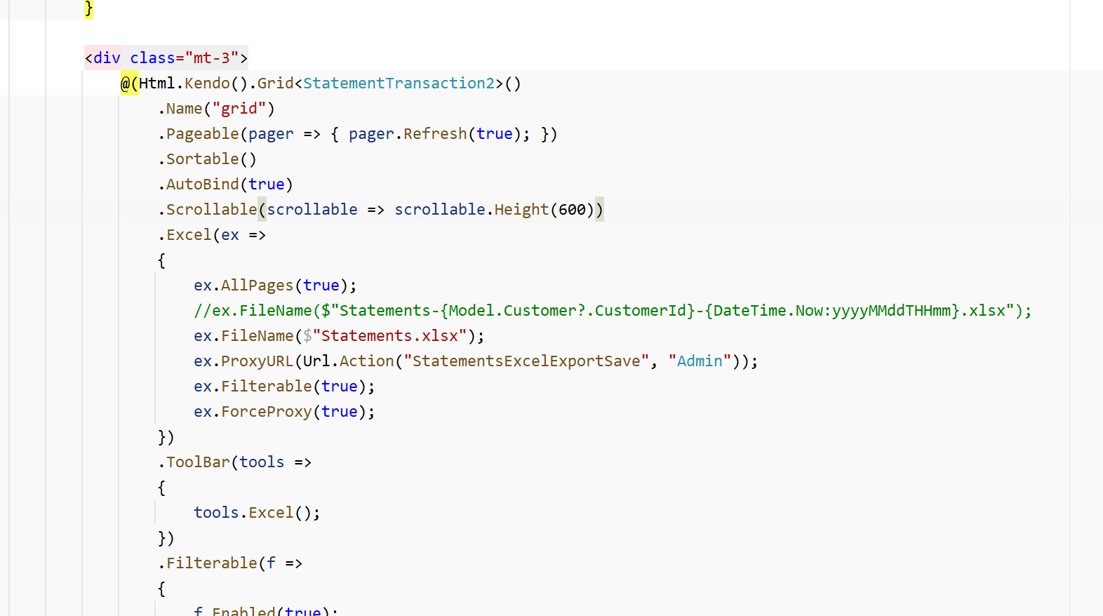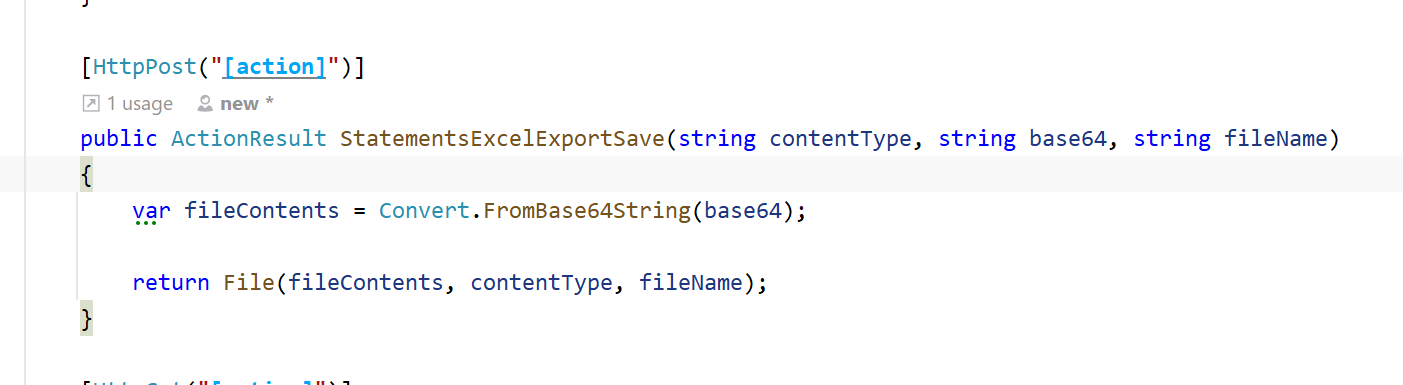 in my Index.cshtml file. I did not write server side function Excel_Export_Save() anywhere. Why below setting still worked in