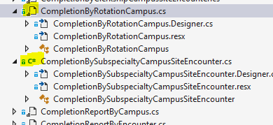 <Compile Include="Evaluations\ECE\CompletionBySubspecialtyCampusSiteEncounter.cs"> <SubType>Component</SubType></Compile><Compile Include="Evaluations\ECE\CompletionBySubspecialtyCampusSiteEncounter.Designer.cs"> <DependentUpon>CompletionBySubspecialtyCampusSiteEncounter.cs</DependentUpon></Compile>Was missing