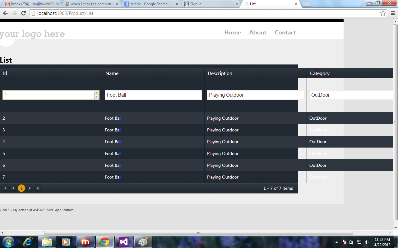 Thanks for your reply. Actually I faced one trouble in Gridview that when I click the edit button that row extends horizontally, which overlaps the right side content of that page. so we decided to create a ajax form with partial view concept for editing the model. In grid view we added a edit button when it will be clicked that record will be edited in an ajax form. And i think you also recommended the same thing in your reply. all we wanted is the width of the row which will be in edit mode should be same as the previous grid view row with non editable mode. I have attached 2 pic. you see it.