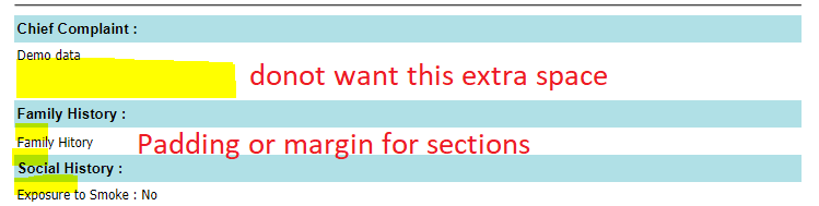 2) If I Remove vertical spaces and adjust some space in between two then that time if I hide some sections and its details shows gap between them and I do not want that more gap. ( e.g. If I hide Past medical History & hospitalization header and its section then