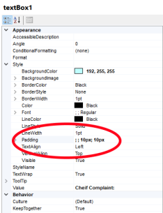 1) I have multiple textboxes / HTML textboxes in my report (Header & sections ) I want padding (not working ) or space on top show I highlighted in attached image now (for this I set border time being) and vertical spaces are remove from it. but that time Text cut off issue occurred.
