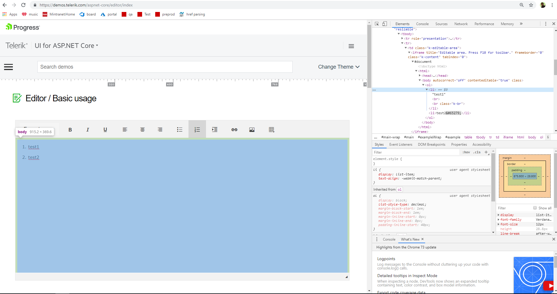 If I look at the elements of editor when adding a new line, before submitting the form, I can see telerik creates a html elements something like