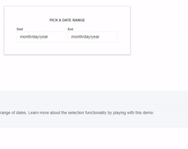 If you hover over a date, you will notice that the highlighting of that range occurs as expected. - Select an end date.