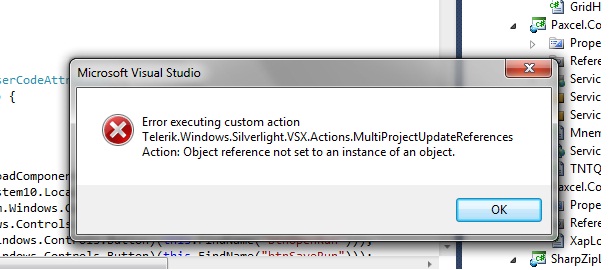Currently I am using Radcontrols for silverlight v.2010.3.1314.1040(Dev) version . I now want to update it to v.2011.2.712.1040 . But as start my updation using updation wizard I get error . Print screen of error is attached . If you could help me how can I solve it .