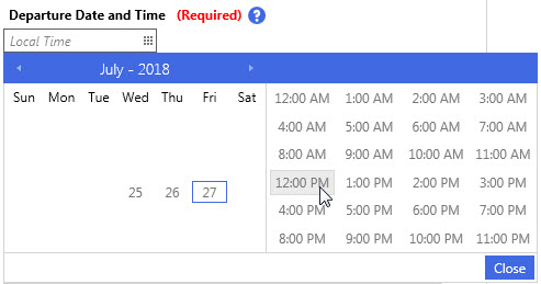 - Itinerary.TravelRequestToDate is of type DateTime and is currently "July 27, 2018 00:00:00"
