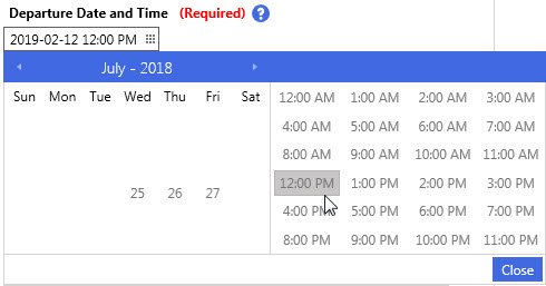 1. What the user sees when he clicks on the DepartureDateTime RadDateTimePicker