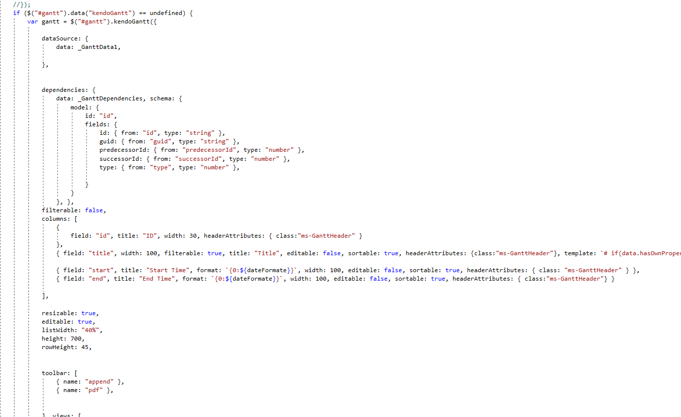 if (e.item.innerText == "Gantt Chart") { var gantt = $("#gantt").data("kendoGantt"); gantt.resize(); gantt.setOptions({ listWidth: "500" }) gantt.refresh();