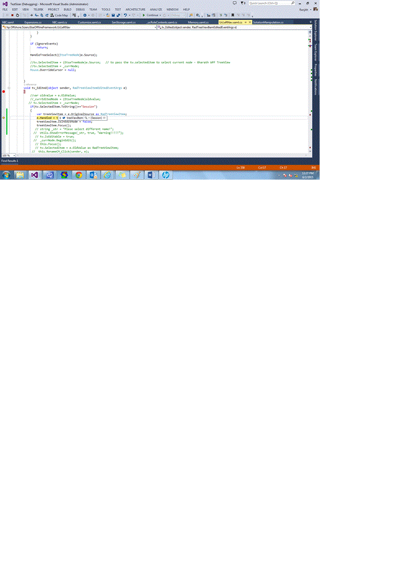 private tv_PreviewEdited(object sender, RadTreeViewItemEditedEventArgs e){ if (tv.SelectedItem.ToString() == "Session") { var oldName = e.OldValue.ToString();