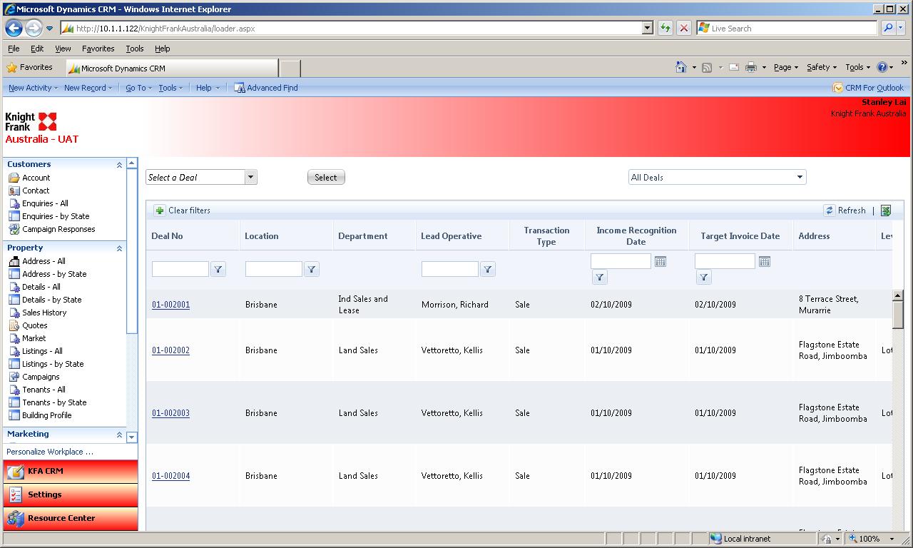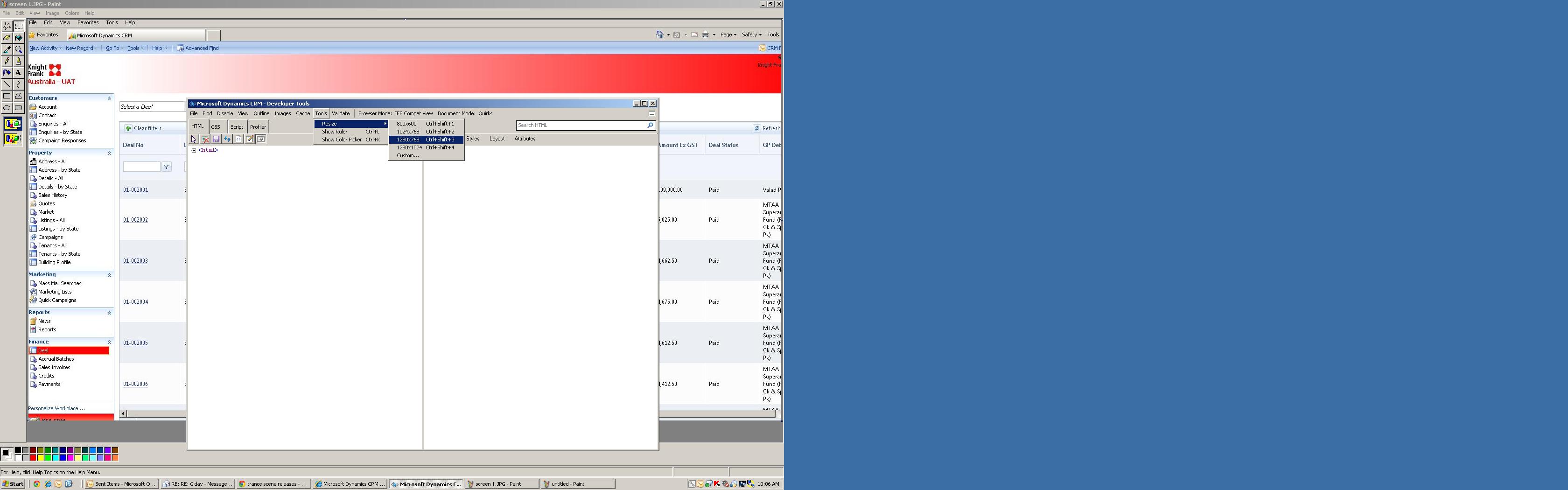<%@ Page Language="C#" AutoEventWireup="true" CodeBehind="WebForm1.aspx.cs" Inherits="GridResizeTest.WebForm1" %><%@ Register Assembly="Telerik.Web.UI" Namespace="Telerik.Web.UI" TagPrefix="telerik" %><!DOCTYPE html PUBLIC "-//W3C//DTD XHTML 1.0 Transitional//EN" "http://www.w3.org/TR/xhtml1/DTD/xhtml1-transitional.dtd"><html xmlns="http://www.w3.org/1999/xhtml"><head runat="server"> <title></title> <script type="text/javascript" src="Scripts/jquery.js"></script> <script type="text/javascript"> var props = null; function BindGridView() { var mtv = $find('RadGrid2').get_masterTableView(); mtv.set_dataSource(props); mtv.dataBind(); } function pageLoad(sender, args) { var propsStr = '[{"Id":1000239080,"IsInternalProp":true,"MapReference":"A","Name":"Property 1","Type":"Mixed Use","Address":"Houston, TX, 77055","YearBuilt":"1926","YearReno":"N/A","Size":"72500","UnitsOfMeasure":"Sq Ft",' + '"OccupancyPct":73.1034482758621,"OccupancyAsOfDate":"\/Date(1310446800000)\/","OriginationDate":"\/Date(1166076000000)\/","OriginalBalance":4900000,"CurrentBalance":4558242.42,"LTV":0.7538,' + '"AppraisalDate":"\/Date(1199983239017)\/","MaturityDate":"06/11/2012","Status":"On Book (Funded)","Latitude":29.7970042,"Longitude":-95.4830243,"PropertyTypeId":1000000100,"QuotedMeasureId":0,"ActualStatus":"Funded/Watchlist"},' + '{"Id":1011246890,"IsInternalProp":false,"MapReference":"B","Name":"Property 2","Type":"Mixed Use","Address":"4601 Washington Avenue, Houston, TX, 77007","YearBuilt":"2009","YearReno":"N/A","Size":"49461",' + '"UnitsOfMeasure":"Sq Ft","OccupancyPct":88.94,"OccupancyAsOfDate":"\/Date(1314853200000)\/","OriginationDate":"\/Date(1320123600000)\/","OriginalBalance":10430021.66,"CurrentBalance":10878245.18,"LTV":0,' + '"AppraisalDate":"\/Date(1320732000000)\/","MaturityDate":"11/05/2021","Status":"Active","Latitude":29.7703016,"Longitude":-95.4076239,"PropertyTypeId":1000000100,"QuotedMeasureId":0,"ActualStatus":"Performing"}]'; props = $.parseJSON(propsStr); BindGridView(); } function RadGrid2_Command(sender, args) { } </script></head><body> <form id="form1" runat="server"> <asp:scriptmanager runat="server"></asp:scriptmanager> <div id="divGrid" style="width:100%"> <telerik:RadGrid ID="RadGrid2" runat="server" Width="100%" > <MasterTableView DataKeyNames="ID" TableLayout="Fixed" Width="1275px"> <Columns> <telerik:GridBoundColumn UniqueName="PropertyId" DataField="Id" Visible="false" /> <telerik:GridBoundColumn UniqueName="IsInternalProp" DataField="IsInternalProp" Visible="false" /> <telerik:GridImageColumn UniqueName="TreppIcon" SortExpression="IsInternalProp" HeaderText="Src" HeaderStyle-Width="30px" ImageUrl="~/images/clear.gif" /> <telerik:GridBoundColumn UniqueName="MapReference" DataField="MapReference" HeaderImageUrl="~/images/google-marker.png" SortExpression="MapReference" HeaderStyle-Width="30px" /> <telerik:GridImageColumn UniqueName="HideProperties" HeaderText="" HeaderStyle-Width="30px" ImageUrl="~/images/clear.gif" /> <telerik:GridBoundColumn UniqueName="Name" DataField="Name" HeaderText="Property" SortExpression="Name" HeaderStyle-Width="120px" /> <telerik:GridBoundColumn UniqueName="PropertyType" DataField="Type" HeaderText="Type" SortExpression="Type" HeaderStyle-Width="70px" /> <telerik:GridBoundColumn UniqueName="Address" DataField="Address" HeaderText="Address" SortExpression="Address" HeaderStyle-Width="140px" /> <telerik:GridBoundColumn UniqueName="YearBuilt" DataField="YearBuilt" HeaderText="Built" SortExpression="YearBuilt" HeaderStyle-Width="50px" /> <telerik:GridBoundColumn UniqueName="YearReno" DataField="YearReno" HeaderText="Reno" SortExpression="YearReno" HeaderStyle-Width="50px" /> <telerik:GridBoundColumn UniqueName="PropSize" DataField="Size" HeaderText="Size" SortExpression="Size" HeaderStyle-Width="80px" /> <telerik:GridBoundColumn UniqueName="OccPct" DataField="OccupancyPct" HeaderText="Occ %" SortExpression="OccupancyPct" HeaderStyle-Width="60px" DataFormatString="{0:N1}%" /> <telerik:GridBoundColumn UniqueName="OccupancyAsOfDate" DataField="OccupancyAsOfDate" HeaderText="Occ As Of" SortExpression="OccupancyAsOfDate" HeaderStyle-Width="80px" DataFormatString="{0:MM/dd/yyyy}" /> <telerik:GridBoundColumn UniqueName="OriginationDate" DataField="OriginationDate" HeaderText="Orig Date" SortExpression="OriginationDate" HeaderStyle-Width="80px" DataFormatString="{0:MM/dd/yyyy}"/> <telerik:GridBoundColumn UniqueName="OriginalAmount" DataField="OriginalBalance" HeaderText="Orig Bal" SortExpression="OriginalBalance" HeaderStyle-Width="85px" DataFormatString="{0:C0}" /> <telerik:GridBoundColumn UniqueName="CurrentBalance" DataField="CurrentBalance" HeaderText="Curr Bal" SortExpression="CurrentBalance" HeaderStyle-Width="85px" DataFormatString="{0:C0}" /> <telerik:GridBoundColumn UniqueName="LTV" DataField="LTV" HeaderText="LTV" SortExpression="LTV" HeaderStyle-Width="65px" DataFormatString="{0:P1}" /> <telerik:GridBoundColumn UniqueName="AppraisalDate" DataField="AppraisalDate" HeaderText="Appraisal" SortExpression="AppraisalDate" HeaderStyle-Width="80px" DataFormatString="{0:MM/dd/yyyy}" /> <telerik:GridBoundColumn UniqueName="MaturityDate" DataField="MaturityDate" HeaderText="Maturity" SortExpression="MaturityDate" HeaderStyle-Width="80px" /> <telerik:GridBoundColumn UniqueName="LoanStatus" DataField="Status" HeaderText="Status" SortExpression="Status" HeaderStyle-Width="60px"/> </Columns> </MasterTableView> <ClientSettings> <ClientEvents OnCommand="RadGrid2_Command" /> <Scrolling AllowScroll="true" FrozenColumnsCount="6" UseStaticHeaders="true" /> </ClientSettings> </telerik:RadGrid> </div> </form></body></html>Thanks,