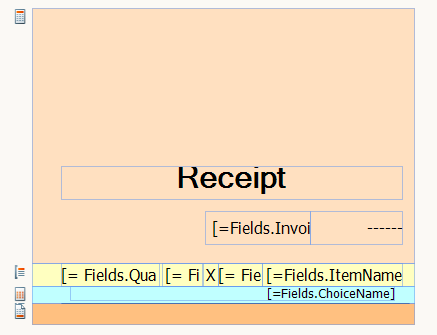 Attached two screen shot for the receipt design (one in design mode and the other after print the receipt). I make it colored for more clarity.