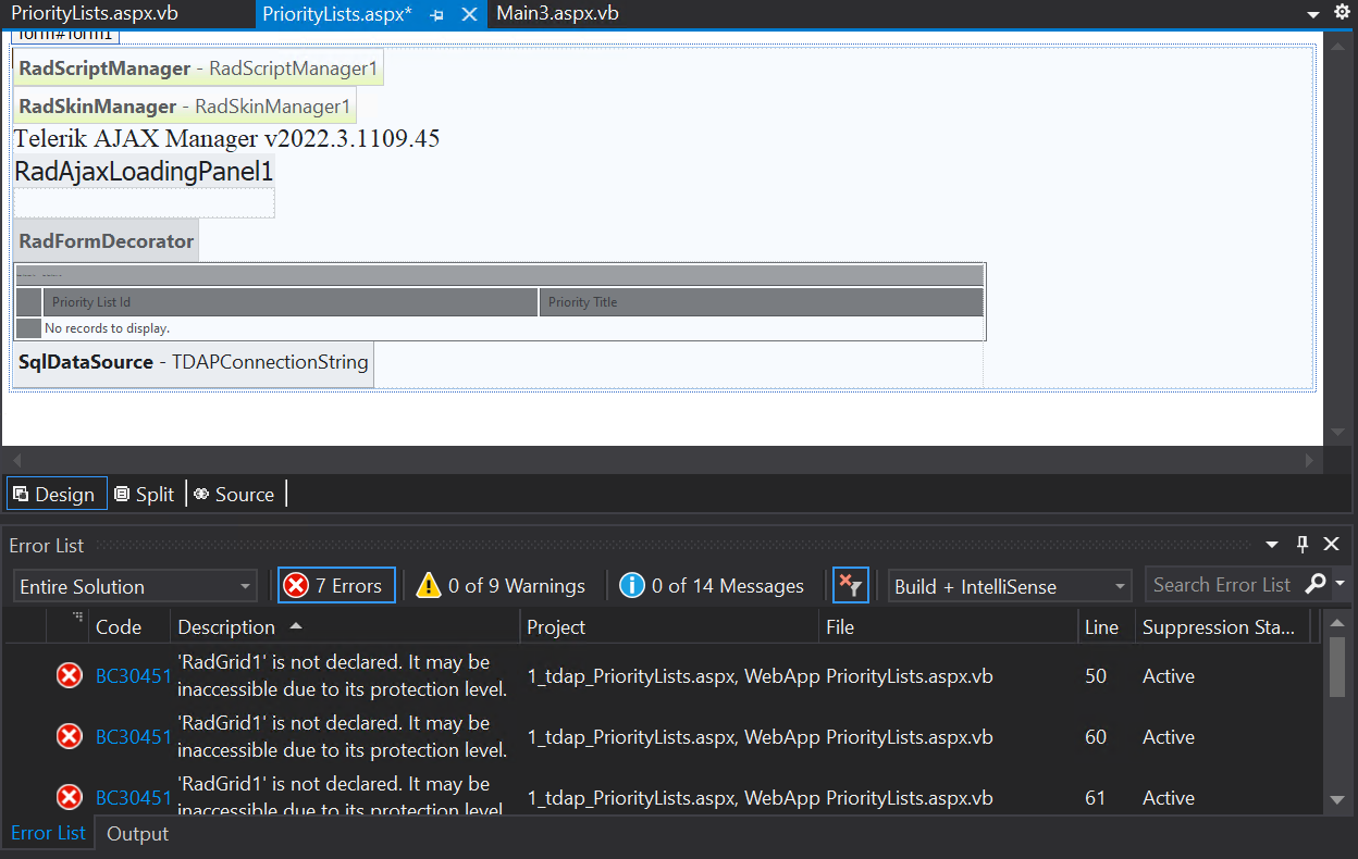 <asp:SqlDataSource ID="TDAPConnectionString" runat="server" ConnectionString="<%$ ConnectionStrings:TDAPConnectionString %>" DeleteCommand="DELETE FROM [Submission_PriorityLists] WHERE [PriorityListId] = @PriorityListId" InsertCommand="INSERT INTO [Submission_PriorityLists] ([PriorityTitle], [SiteIdNumber]) VALUES (@PriorityTitle, @SiteIdNumber)" SelectCommand="SELECT * FROM [Submission_PriorityLists] ORDER BY [PriorityTitle]" UpdateCommand="UPDATE [Submission_PriorityLists] SET [PriorityTitle] = @PriorityTitle, [SiteIdNumber] = @SiteIdNumber WHERE [PriorityListId] = @PriorityListId">