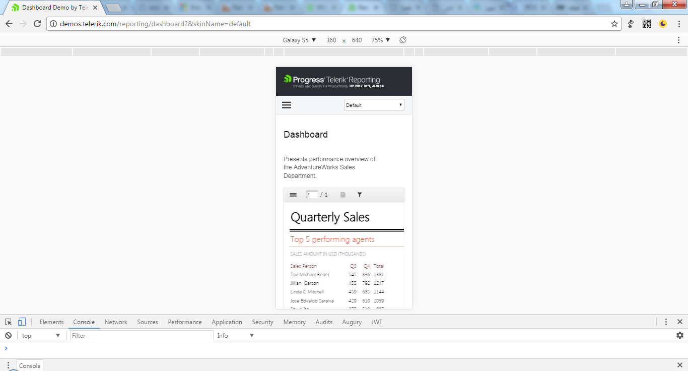 Demo link: http://demos.telerik.com/reporting/dashboard?&skinName=default