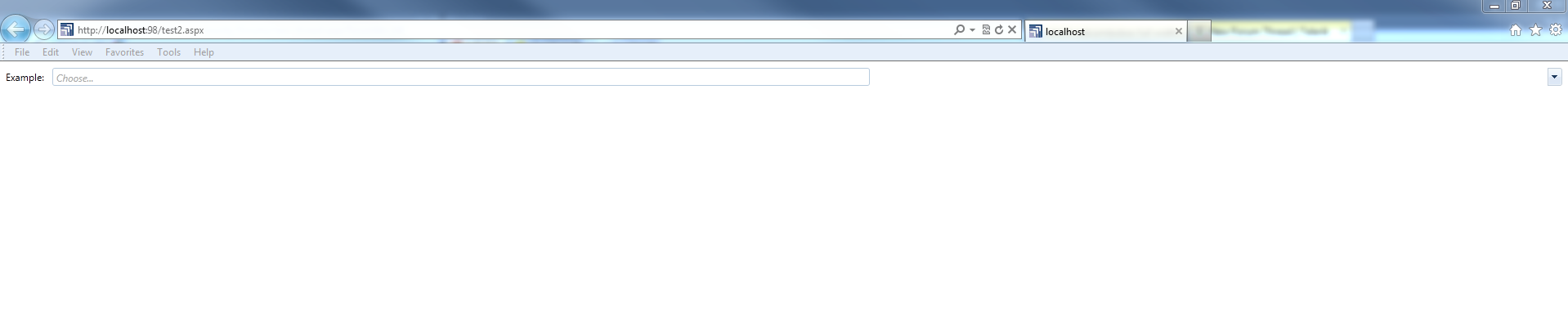 <%@ Page Language="vb" AutoEventWireup="false" CodeBehind="test2.aspx.vb" Inherits="SWTAFE_SPOT_v2.test2" %><!DOCTYPE html PUBLIC "-//W3C//DTD XHTML 1.0 Transitional//EN" "http://www.w3.org/TR/xhtml1/DTD/xhtml1-transitional.dtd"><html xmlns="http://www.w3.org/1999/xhtml"><head runat="server"> <title></title></head><body> <form id="form1" runat="server"> <telerik:RadScriptManager ID="RadScriptManager1" runat="server"></telerik:RadScriptManager> <div style="width:100%"> <telerik:RadComboBox runat="server" ID="RadComboBox1" EnableLoadOnDemand="True" EmptyMessage ="Choose..." Label="Example:" AutoPostBack="true" Height="140px" Width="100%" > </telerik:RadComboBox> </div> </form></body></html>