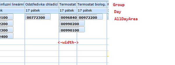 In column “Termostat” Appointment overlap next column. Width of column is done by text “Termostat”. It is done for horizontal and vertical orientation also. See image.