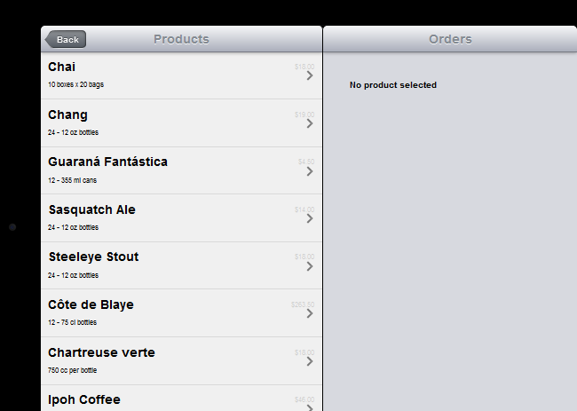If I have a web grid getting rendered in mobile, I want it to show only one column(may be name) as given in the image(Name.png)(instead of beverages/Names), then rest of the user information should be loaded on click like a split view like image(Details.png)(instead of products it will have information like address, pincode etc).