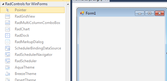 After manually adding the WinForm controls to the toolbox, they are not showing up as selectable from the toolbox when i create a WinForm app. They are "deactivated." Is there a compatibility issue w/ the WinForm controls and the VS 2010 RC release?