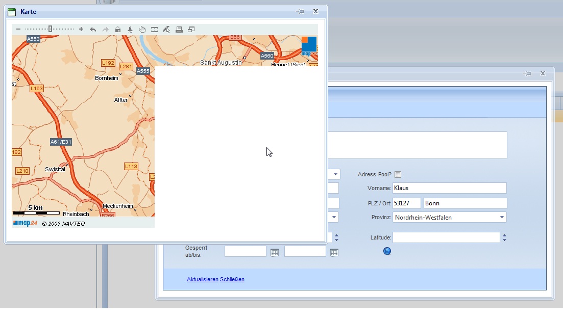 thats partly overlayed on the first. THis window shows a java applet (grafic / MAP24TP Routing).