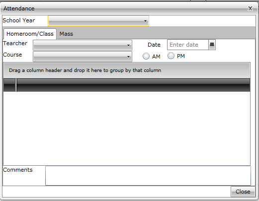 <UserControl x:Class="ISIS.Silverlight.Office.Attendance2" xmlns:telerik="http://schemas.telerik.com/2008/xaml/presentation" mc:Ignorable="d" d:DesignHeight="490" d:DesignWidth="700"> <Grid x:Name="LayoutRoot" Background="White"> <Grid.RowDefinitions> <RowDefinition Height="Auto" /> <RowDefinition Height="Auto" /> <RowDefinition Height="Auto" /> <RowDefinition Height="*" /> </Grid.RowDefinitions> <Grid HorizontalAlignment="Stretch" Margin="0,2,2,0" Name="grid2" VerticalAlignment="Stretch"> <Grid.ColumnDefinitions> <ColumnDefinition Width="Auto" /> <ColumnDefinition Width="*" /> </Grid.ColumnDefinitions> <TextBlock Height="18" Width="74" HorizontalAlignment="Stretch" Name="lblSchoolYear" Text="School Year" VerticalAlignment="Center" Margin="6,2,0,2" /> <telerik:RadComboBox Width="204" Height="22" Grid.Column="1" HorizontalAlignment="Left" Name="radComboBox1" VerticalAlignment="Top" > </telerik:RadComboBox> </Grid> <telerik:RadTabControl Name="tabAttendance" Margin="0,2,0,2" Grid.Row="1" Width="670" Height="400" HorizontalAlignment="Stretch" VerticalAlignment="Top" > <telerik:RadTabItem Header="Homeroom/Class" HorizontalAlignment="Stretch" Name="tabItemHomeroom" IsSelected="True" VerticalAlignment="Stretch" > <Grid HorizontalAlignment="Stretch" Name="grid1" VerticalAlignment="Stretch"> <Grid.ColumnDefinitions> <ColumnDefinition Width="Auto"/> <ColumnDefinition Width="Auto" /> <ColumnDefinition Width="Auto" /> <ColumnDefinition Width="Auto" /> <ColumnDefinition Width="*" /> </Grid.ColumnDefinitions> <Grid.RowDefinitions> <RowDefinition Height="Auto" /> <RowDefinition Height="Auto" /> <RowDefinition Height="*" /> <RowDefinition Height="Auto" /> </Grid.RowDefinitions> <TextBlock Width="56" Height="23" HorizontalAlignment="Right" Name="lblTeacher" Text="Tearcher" VerticalAlignment="Center" Margin="4,0,0,0" /> <telerik:RadComboBox Width="200" Grid.Column="1" HorizontalAlignment="Left" Name="cboTeacher" VerticalAlignment="Center"> </telerik:RadComboBox> <TextBlock Width="56" Height="23" HorizontalAlignment="Right" Name="lblCourse" Text="Course" VerticalAlignment="Center" Grid.Row="1" Margin="4,0,0,0" /> <telerik:RadComboBox Width="200" Grid.Column="1" Grid.Row="1" HorizontalAlignment="Left" Name="cboCourse" VerticalAlignment="Center"> </telerik:RadComboBox> <TextBlock Width="70" Height="18" TextAlignment="Center" HorizontalAlignment="Right" Name="Date" Text="Date" VerticalAlignment="Center" Grid.Column="2" /> <telerik:RadDatePicker Grid.Column="3" HorizontalAlignment="Left" Name="dtpDate" VerticalAlignment="Top" Width="98" /> <RadioButton Width="46" Content="AM" GroupName="time" Grid.Column="2" Grid.Row="1" Height="20" HorizontalAlignment="Left" IsChecked="False" Name="optAm" VerticalAlignment="Center" Margin="20,0,4,0" /> <RadioButton Width="44" Content="PM" GroupName="time" Grid.Column="3" Grid.Row="1" Height="20" HorizontalAlignment="Left" IsChecked="False" Name="optPM" VerticalAlignment="Center"/> <telerik:RadGridView Grid.ColumnSpan="5" Grid.Row="2" HorizontalAlignment="Stretch" Name="gridHomeroom" VerticalAlignment="Stretch" Margin="3,3,3,3" ShowGroupPanel="False" /> <TextBlock Height="36" HorizontalAlignment="Left" Name="lblComment" Text="Comments" VerticalAlignment="Center" Width="74" Grid.Row="3" Grid.ColumnSpan="2" Margin="3,2,0,6" /> <telerik:RadRichTextBox Grid.Column="1" Grid.Row="3" HorizontalAlignment="Left" Name="txtComments" VerticalAlignment="Center" Width="585" Grid.ColumnSpan="4" Height="40" Margin="20,0,0,3" /> </Grid> </telerik:RadTabItem> <telerik:RadTabItem Header="Mass" HorizontalAlignment="Stretch" Name="tabItemMass" VerticalAlignment="Stretch" > </telerik:RadTabItem> </telerik:RadTabControl> <StackPanel Grid.Row="2" HorizontalAlignment="Right" Name="stackPanel1" Margin="0,0,3,0" Height="24" Orientation="Horizontal" Width="Auto" > <telerik:RadButton Content="Close" Height="22" Name="btnClose" Width="50" /> <telerik:RadButton Content="New" Height="22" Name="btnNew" Width="50" /> </StackPanel> </Grid></UserControl>public void Show() { RadWindow _oWin = new RadWindow(); _oWin.Header = "Attendance"; _oWin.Content = this; _oWin.Show(); }0