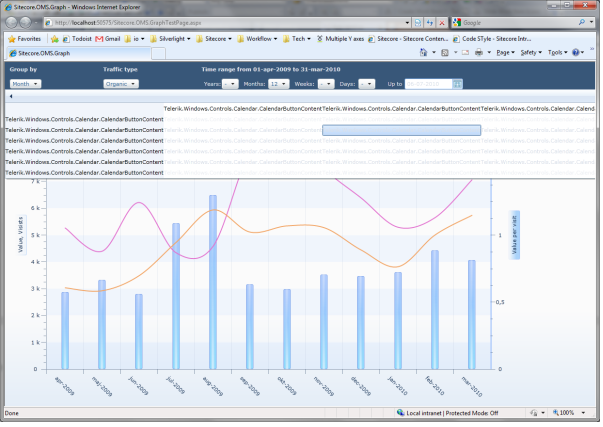 We removed a ContentTemplate DataTemplate of the Calendar button and implemented ToString() on the DataContext item passed to each button. That should be the reason for the bug but we changed both the viewmodel and the template. Can you give us exact version of the theme you are using what versions are the dlls etc. if you could provide us a small example that can reproduce the problem it would be really helpful.