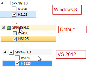 The RadTreeView tristate checkbox does not display the Indeterminate value correctly on the Windows 8 theme. Attached is a screen showing this.
