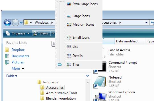 Can you, with tile viewer (or maybe a mixture of tile view and others) create a windows explorer type view (on the explorer menu, choose Views, then List, Tiles, or Details). Well, I guess you can, but can it be done easily, or is it already done? Only the container part (the list of items), not the tree view and not everything else around it.