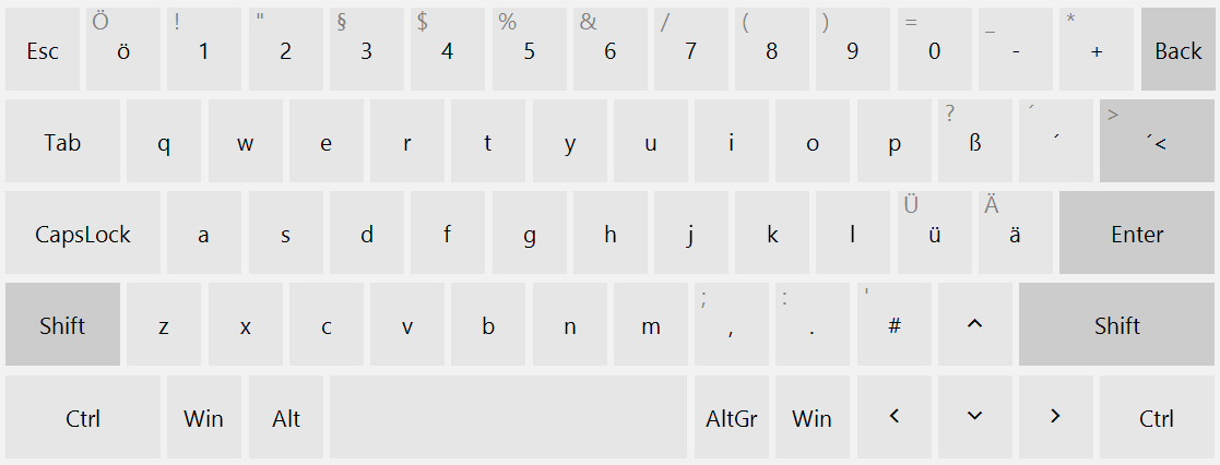 leads to this result which is not correct as well because the german keyboard layout is QWERTZ