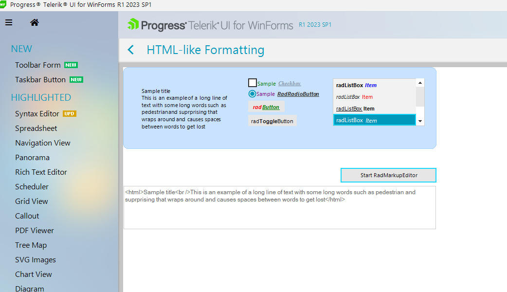 I have issues in my application which makes use of HTML formatted text in RadLabel. The issue I have is that spaces between words can get lost. This is easy to reproduce using the your latest demo application for Winforms R1 2023 SP1.