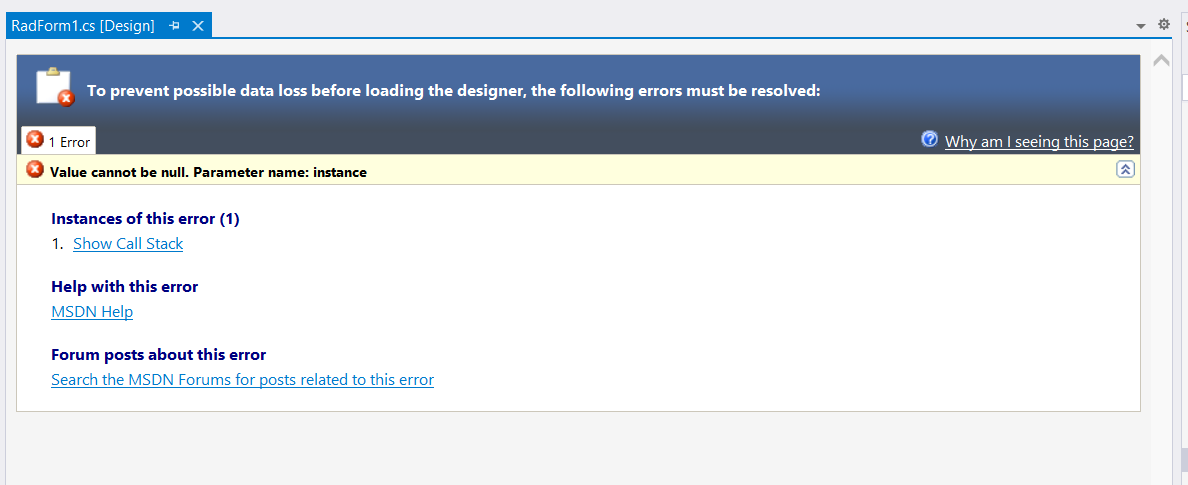 I got the following error while loading the RadForm. Can you help. Thanks