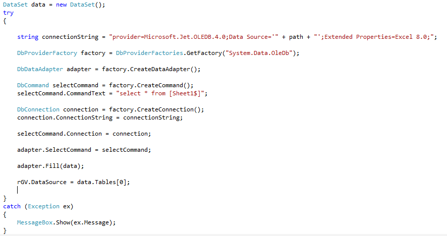 I have a requirement where i have radgridview which is having 5 predefined columns , i need to upload data into these fields from excel