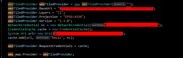 }This approach uses the default code for the WmsTiledProvider and replaces its tile source with a custom one. The imporant code is within the GetTile method of the CustomWmsTileSource class, which allows for replacing the "PNG" in the created Uri.