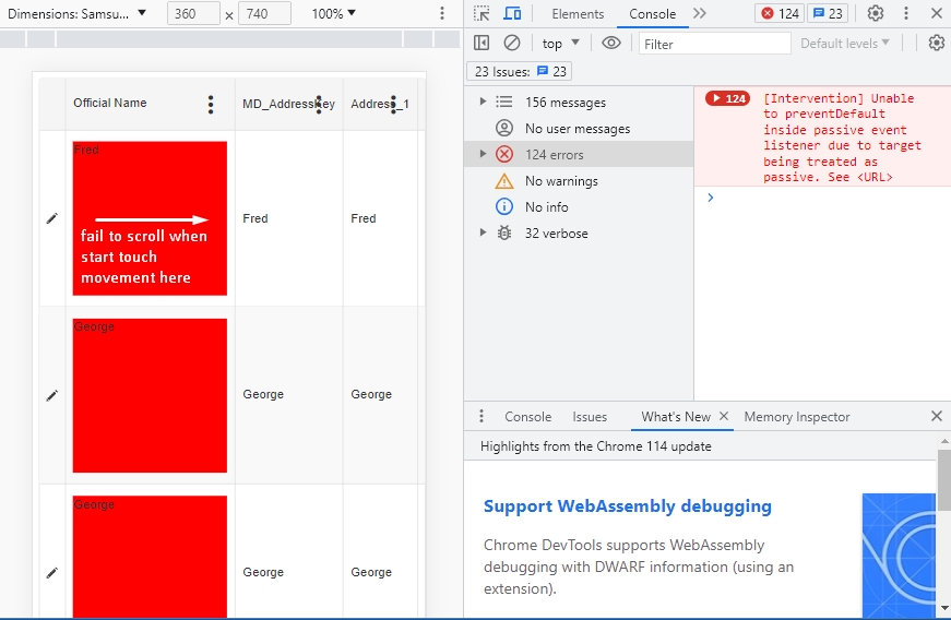 NOTE: I've noticed that if i carefully touch the space between the rows i can scroll up and down without problem but the content behaves just like i described above. Thx