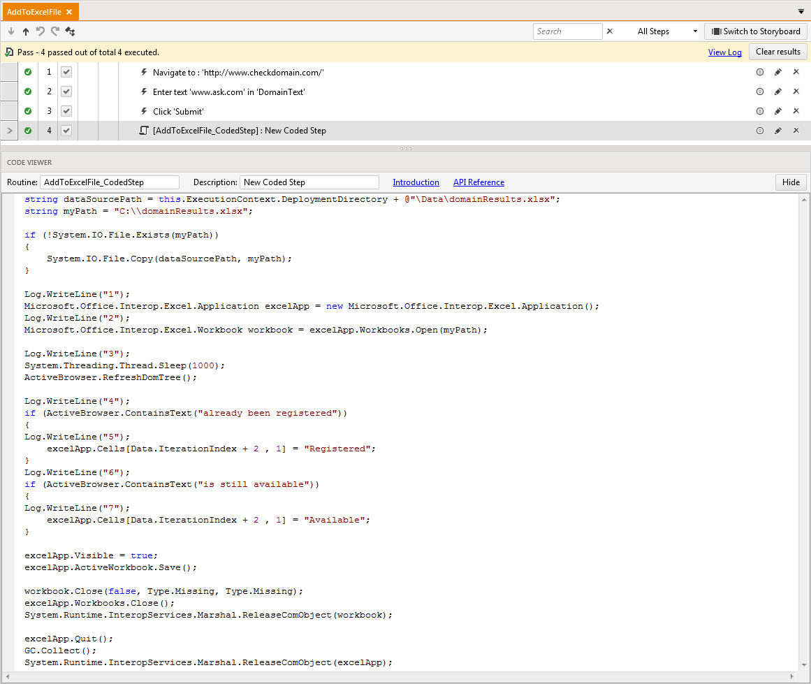 '6/19/2015 1:04:44 PM' - 'Pass' : 4. [AddToExcelFile_CodedStep] : New Coded Step